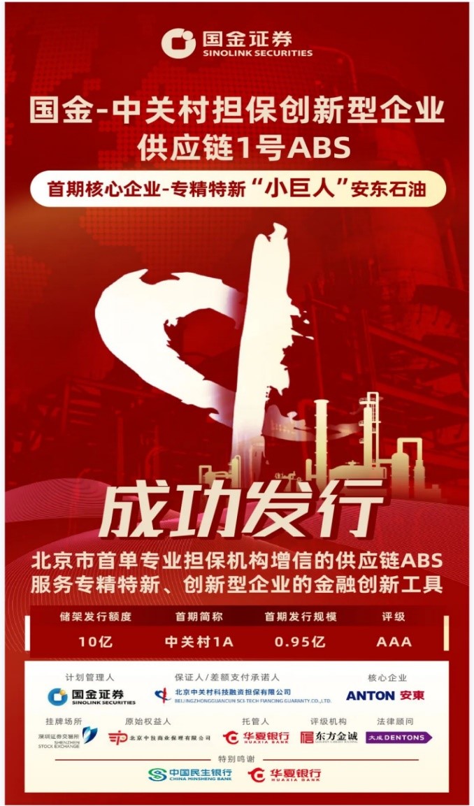 中技保理參與“國金-中關(guān)村擔(dān)保創(chuàng)新型企業(yè)供應(yīng)鏈1號(hào)ABS”發(fā)行